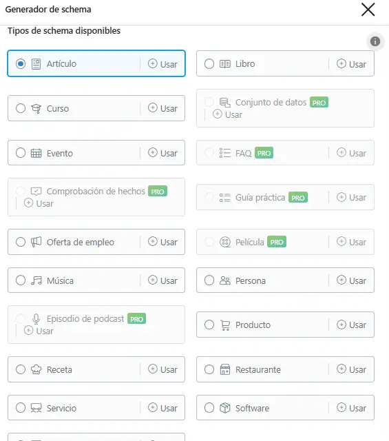 - Article / BlogPosting – artículos y posts.