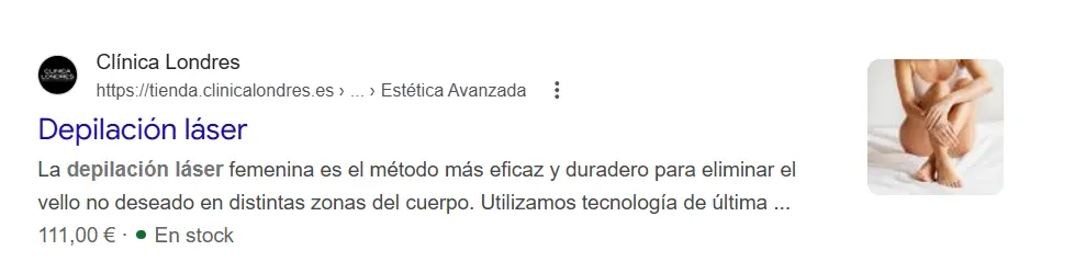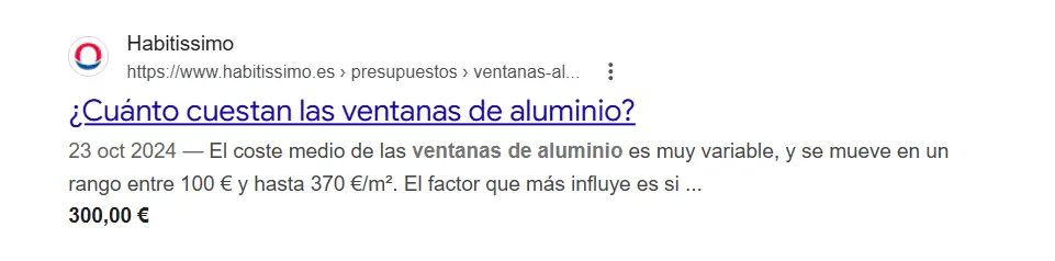 En fichas de producto, Google puede indicar el precio, el rango de precios o incluso ofertas activas. Mostrar el coste antes del clic filtra al usuario y atrae tráfico más cualificado, ya que quien entra ya conoce el precio aproximado.