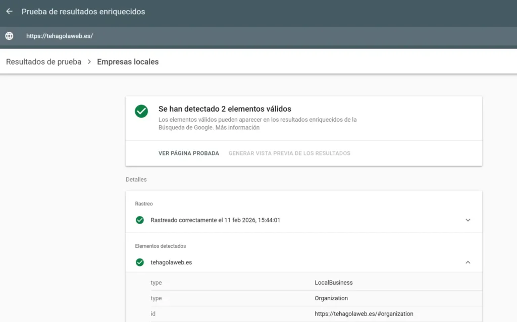 👉 Si quieres una web optimizada para Google, con datos estructurados bien implementados y pensados para convertir, en TeHagoLaWeb lo incluimos de serie.